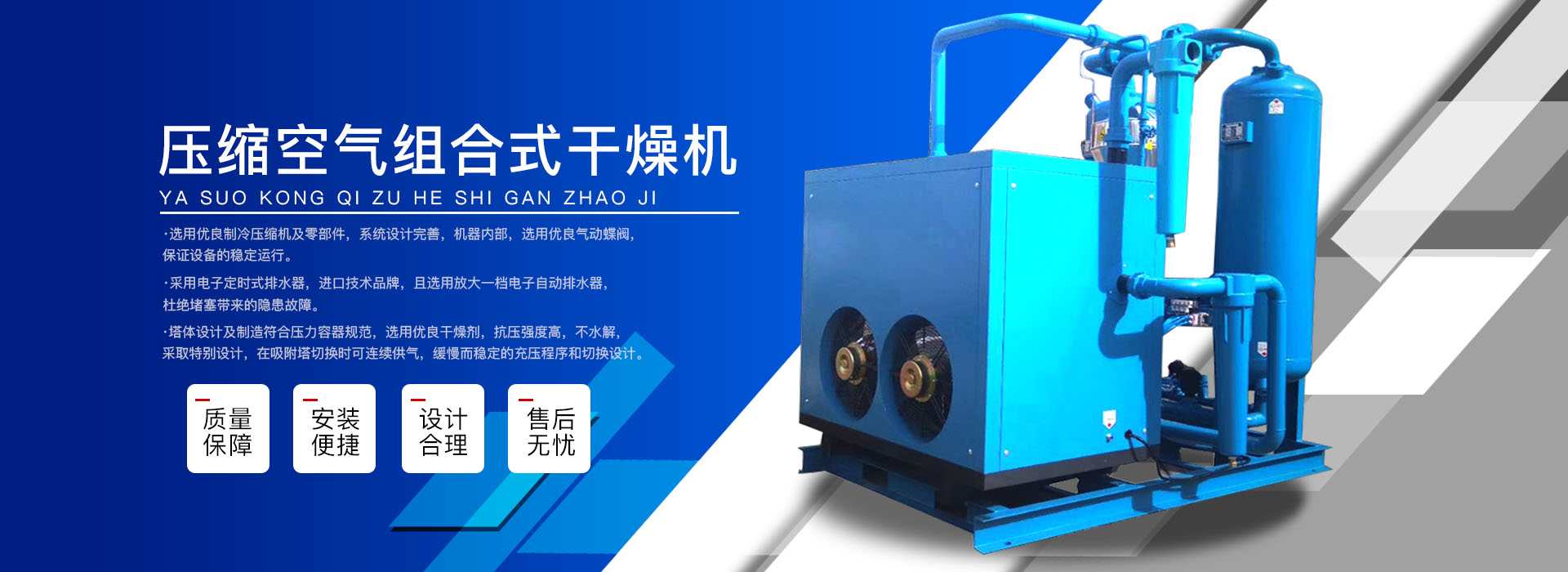 本公司系中國科學(xué)院、重鋼院、機(jī)電技術(shù)設(shè)計(jì)院、氣動技術(shù)研究所等相關(guān)專家合作的具有雄厚技術(shù)力量的高科技實(shí)體,是一個專業(yè)從事各種氣體干燥凈化及分離純化設(shè)備研究開發(fā)及推廣應(yīng)用的高科技公司。公司積多年對壓縮空氣凈化設(shè)備的生產(chǎn)技術(shù)和銷售經(jīng)驗(yàn),并在消化吸收國外先進(jìn)技術(shù)的基礎(chǔ)上,結(jié)合國內(nèi)實(shí)際工況特點(diǎn),研制出適合國內(nèi)外廣大用戶的“滬盛”牌HSD系列壓縮空氣冷凍式干燥機(jī)、吸附式干燥機(jī)、后部冷卻器、預(yù)冷機(jī)組、工業(yè)用冷水機(jī)組和HF系列壓縮空氣高效精密過濾器(國產(chǎn)濾殼,美國漢克森HANKISON濾芯)等13大系列計(jì)300多種規(guī)格產(chǎn)品。并且新研發(fā)出燥式干器, 廣泛應(yīng)用于電力、冶金、電子、機(jī)械、石油、化工、汽車制造、紡織、化纖、輕工、造紙、橡膠、儀表、食品、空氣、卷煙、生物、醫(yī)藥、日化等行業(yè),在國內(nèi)同行業(yè)中一直處于領(lǐng)先地位。